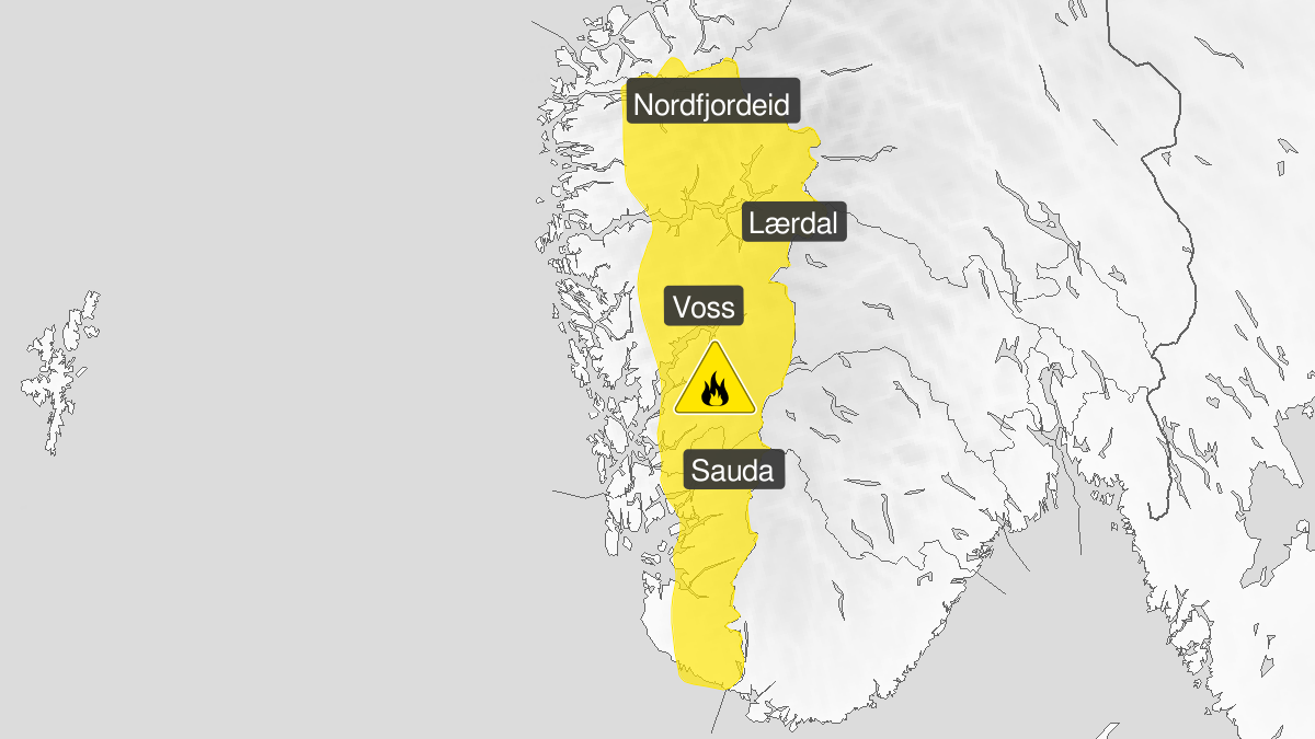 Lokal gras- og lyngbrannfare i snøfrie område til det kjem nedbør av betydning.