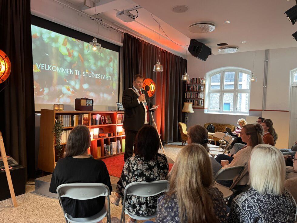 Roald Aga Haug, ordførar i Ullensvang kommune talar ved studiestart 17. september 2025