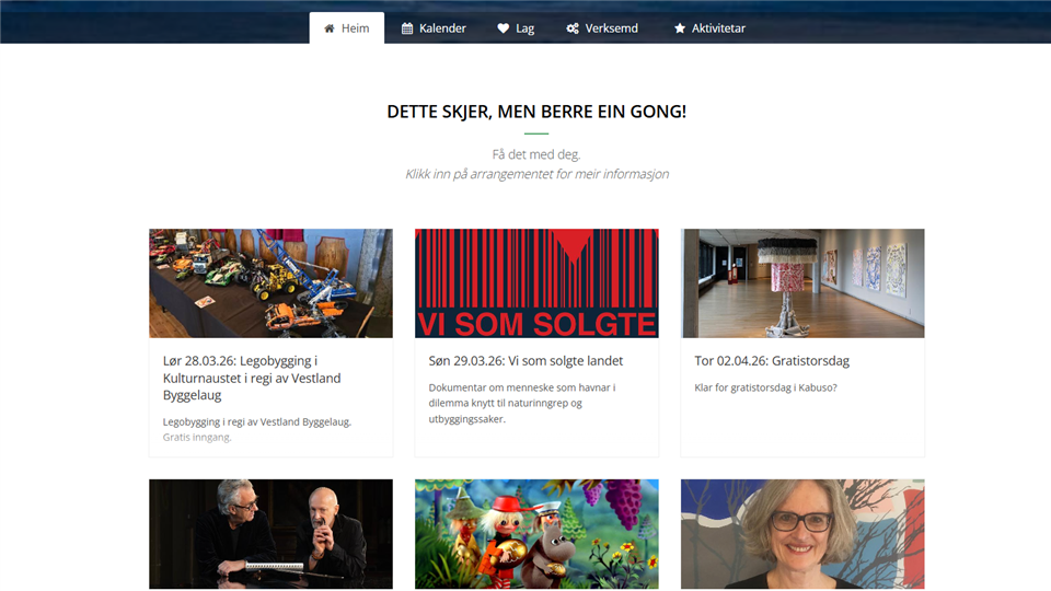 Kva skjer i Kvam? På skjerikvam.no finn du oversikt over ulike arrangement og aktivitetar til kvardag, helg og i påska.