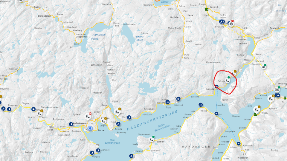 Nattestenging: Folkedal natt til fredag 14/11 Fv.79 Øystese - Granvin vert nattestengt frå torsdag kveld - fredags morgon i veke 46.