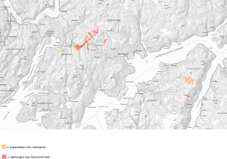 Område med venta dårlegare dekning i perioden med arbeid