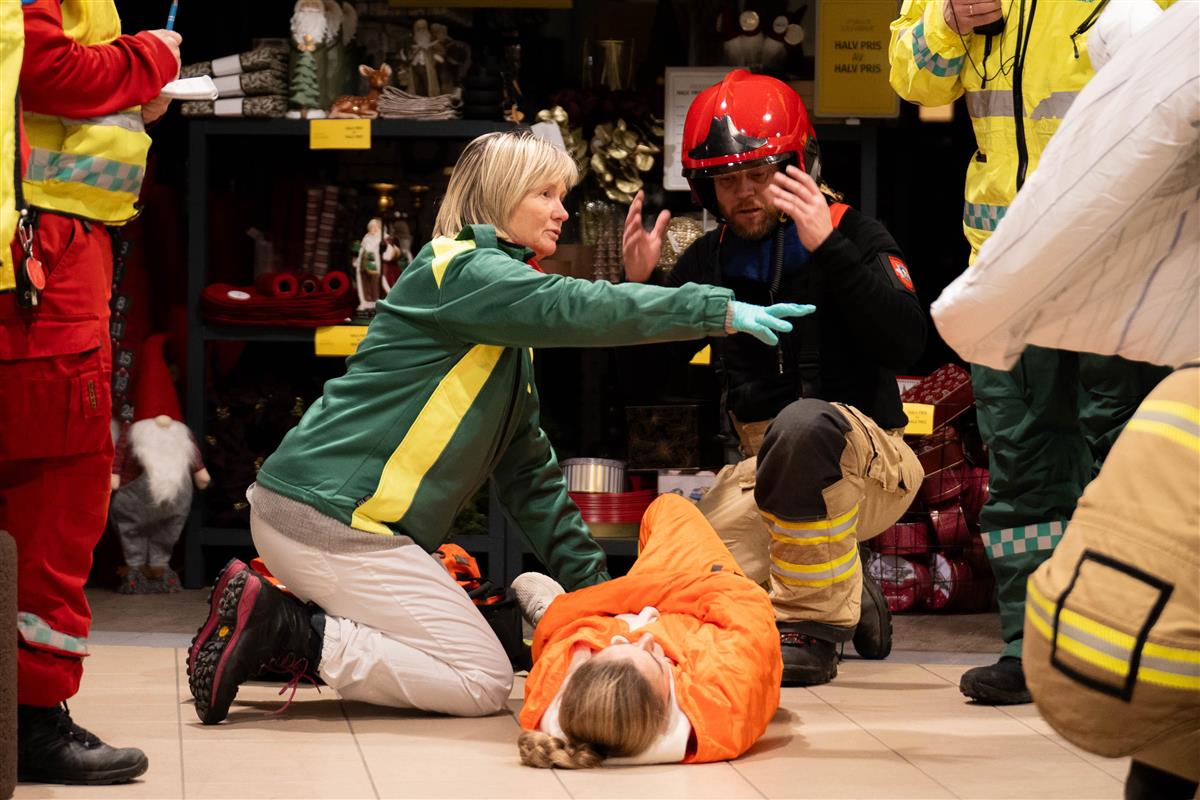 Det er henta inn markørar som skal spela rolla som evakuerte og pårørande for å gjere øvinga mest mogleg realistisk.