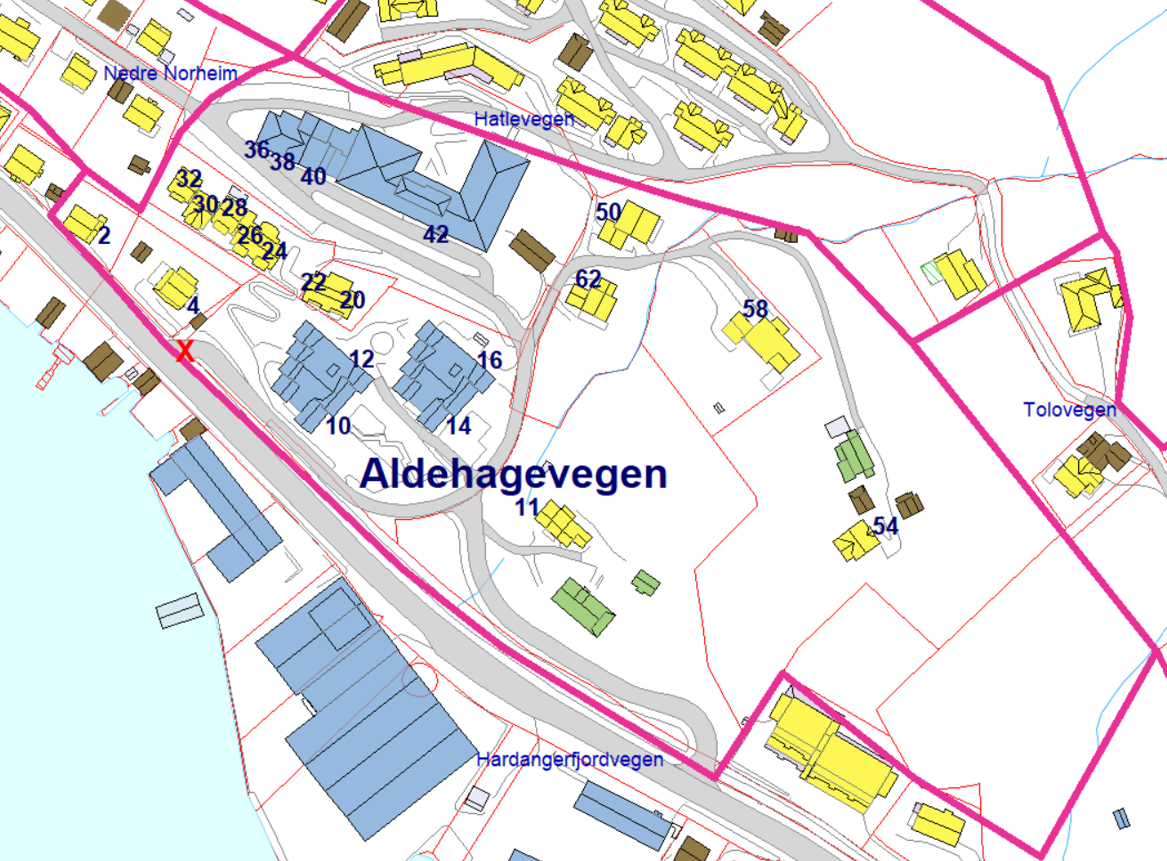- Område for adresse Aldehagevegen og adressenummer framgår av bildet